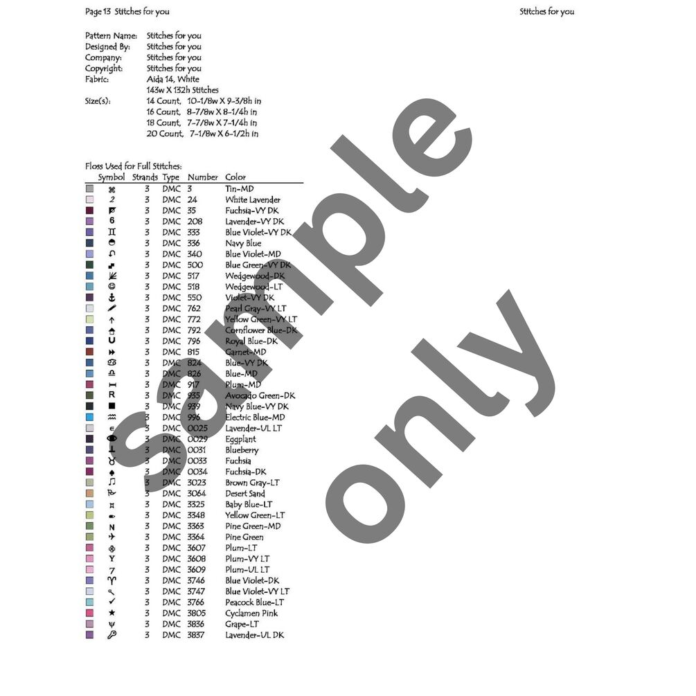 - amounts of threads required to complete the design Stitches for you Cross Stitch designs for hours of enjoyment. Copyright © Stitches For You Cross Stitch. All rights reserved. All patterns are copyright protected and cannot be reproduced, redistributed, copied or sold.