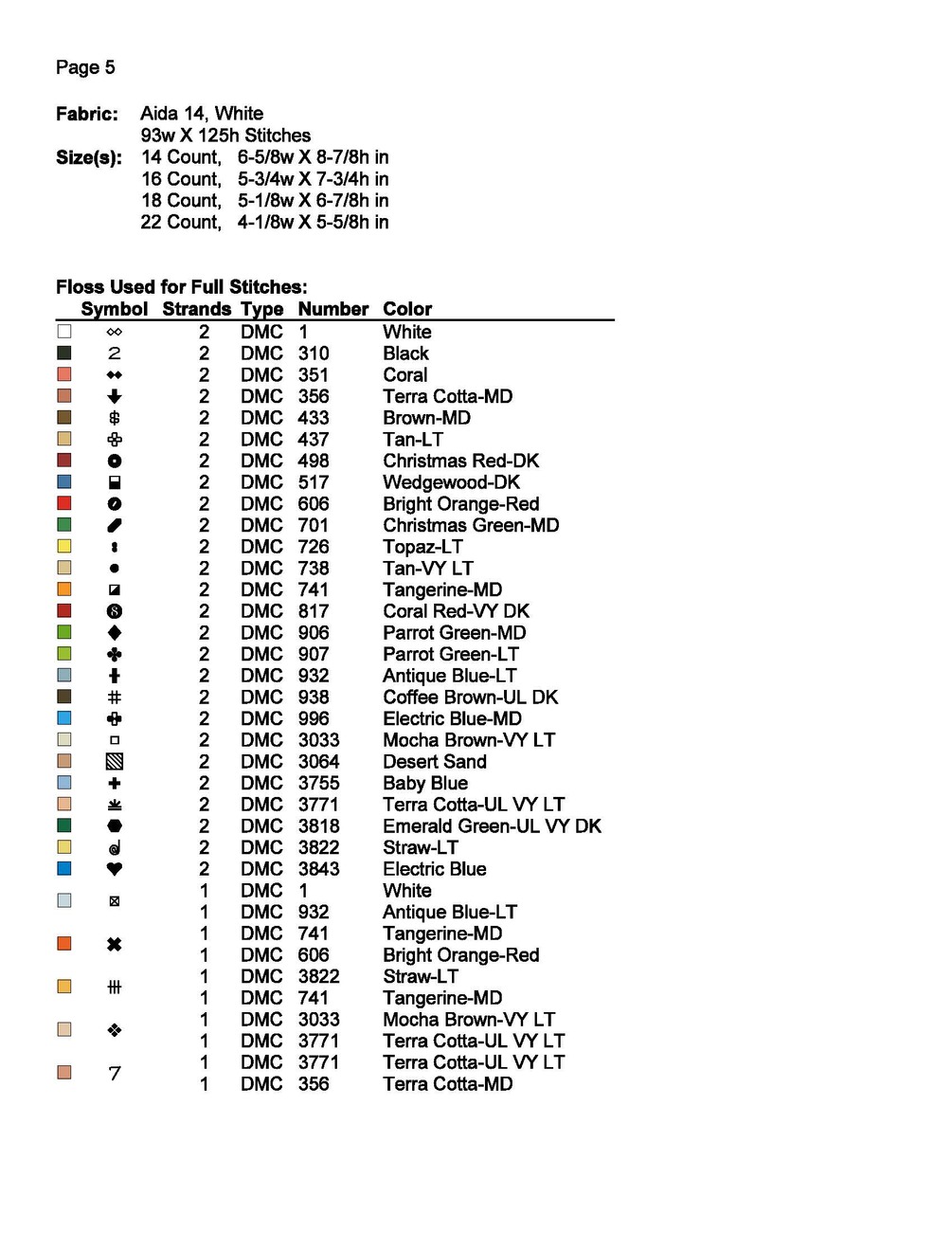 * The pattern pages are in colored blocks & Black and white 31 DMC colors