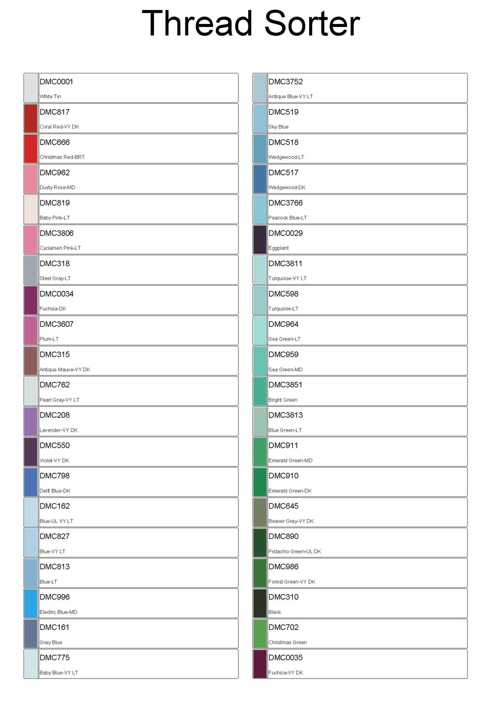 - thread organizer to be printed on card to support the threads