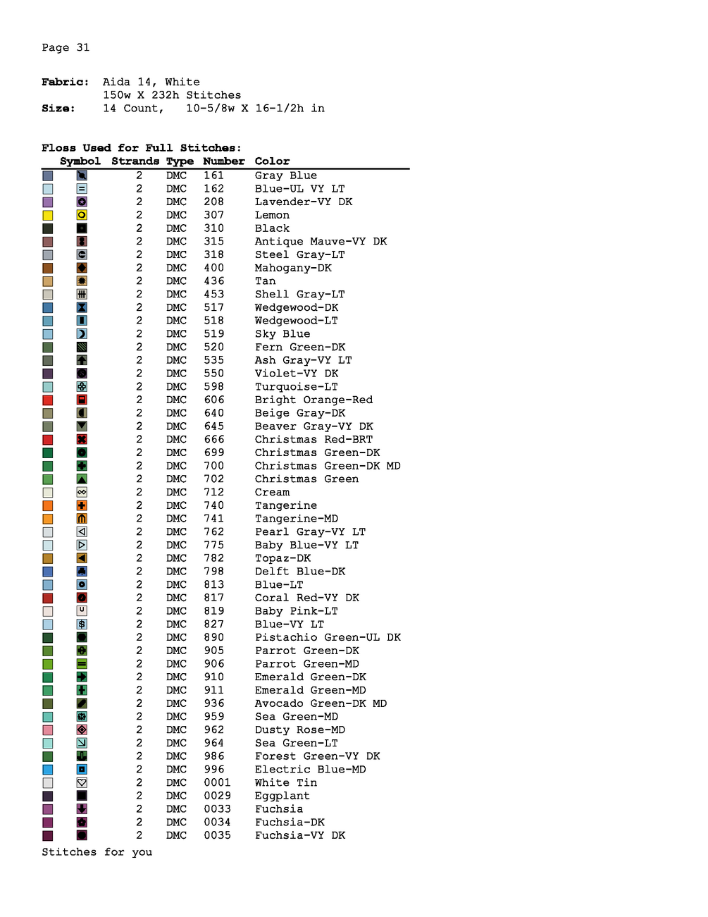 - Copyright © Stitches For You Cross Stitch. All rights reserved. All patterns are copyright protected and cannot be reproduced, redistributed, copied or sold.